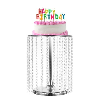 Unique Bargains Wedding Party Metal Cake Stand with Crystal Bling Pendants
