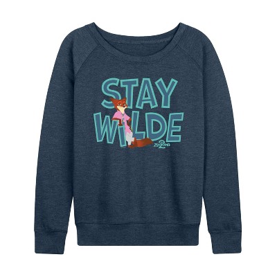 Women's - Zootopia - Nick The Fox Stay Wilde Lightweight French Terry Wide Neck Long Sleeve Graphic Shirt