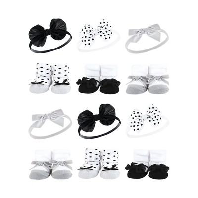 Hudson Baby Infant Girl 12Pc Headband and Socks Giftset, Black Silver, One Size