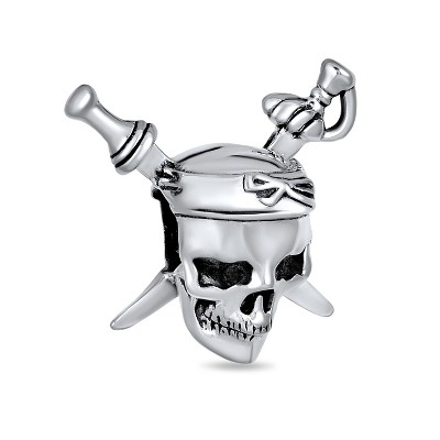 Bling Jewelry Halloween Pirate Skull & Cross Swords Charm Bead Sterling Silver European Bracelet