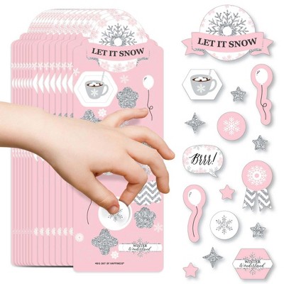 Big Dot of Happiness Pink Winter Wonderland - Holiday Snowflake Birthday Party and Baby Shower Favor Kids Stickers - 16 Sheets - 256 Stickers