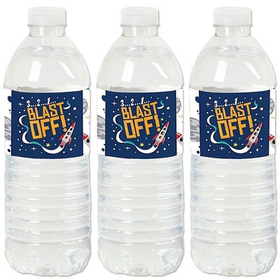 Big Dot of Happiness Blast Off to Outer Space - Rocket Ship Baby Shower or Birthday Party Water Bottle Sticker Labels - Set of 20