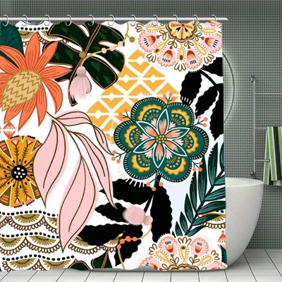 Shower Curtain - Water-Resistant Long Shower Curtain with Hooks - Botanical Bathroom Curtains 70.8x70.8in