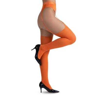 LECHERY Women's Spaghetti Long Thin Strap Open Pantyhose, Lustrous Shiny 20 Denier Suspender Tights for Ladies, Faux Garter Stockings