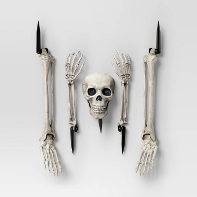 Northlight LED Lighted Skull and Hands Outdoor Halloween Decoration - 4' Black Wire - Orange
