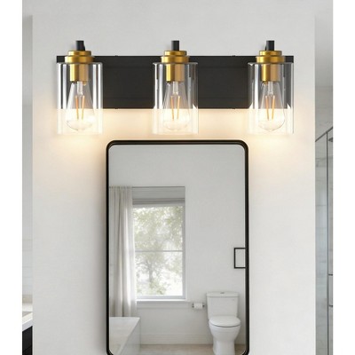 DORESshop 3-Light Matte Black Metal Vanity Light Farmhouse Industrial Wall Sconce with Clear Glass Shade Gold Socket Cups