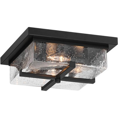Franklin Iron Works Grambling 11 3/4" Farmhouse Industrial Flush-Mount Ceiling Light Fixture Kitchen Foyer 4-Light Rustic Black Finish Seeded Glass