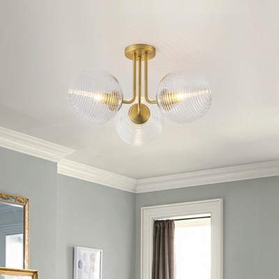 LLHZSY 3-Light 22" Modern Sputnik Ribbed Globe Glass Semi Flush Mount Ceiling Light Fixture-Gold/Black and Gold