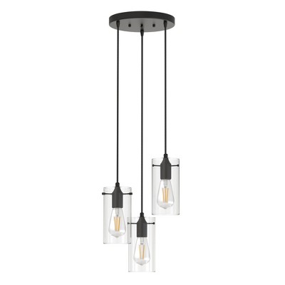 10 in. 3-Light Matte Black Vintage Cluster Pendant Light Fixture with Large Clear Glass for Dining Table