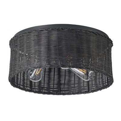 Dewdrop Modern Black Rattan Ceiling Light, Farmhouse Flush Mount Fixture for Entryway or Kitchen