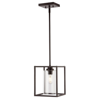 JONATHAN Y 11.25" 1-Light Hayes Industrial Farmhouse Iron/Glass LED Pendant Oil Rubbed Bronze/Clear: Vintage Style Hanging Ceiling Fixture