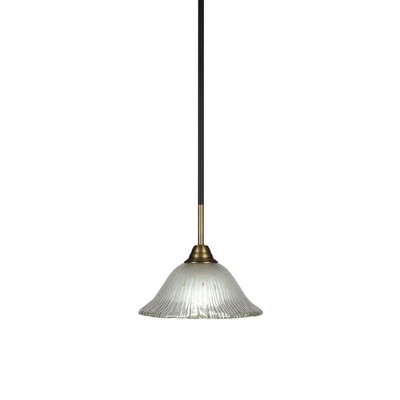 Toltec Lighting Carina 1 - Light Pendant in Matte Black with 14" Clear Ribbed Shade