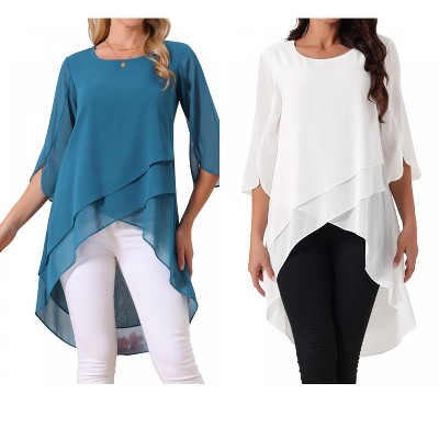 INSPIRE CHIC Women's High Low Hem Scoop Neck Asymmetrical 3/4 Sleeve Summer Top 2 Packs