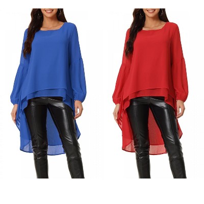 INSPIRE CHIC Women's Lantern Long Sleeve Round Neck High Low Irregular Hem Casual Blouse 2 Packs