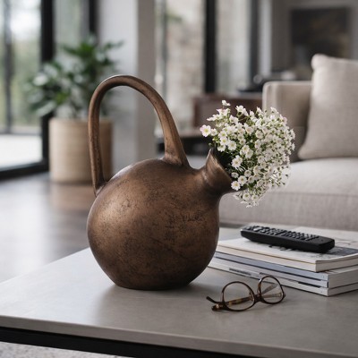 Rustic Metal Jug Vase for Living Room Decor - Vintage Style Flower Vase for Home, Bedroom, Table, or Office Space