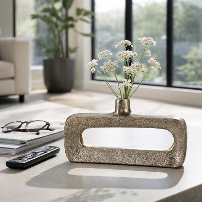 Modern Open Cut-Out Bud Vase for Living Room Decor - Decorative Short Flower Vase for House, Bedroom, or Dining Room Table - 5", Gold & Bronze