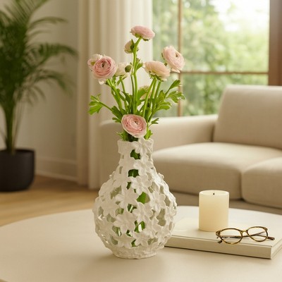 17" x 7.5" Terracotta Vase White - Olivia & May: Coastal Style, Indoor Ceramic, Round Amphora