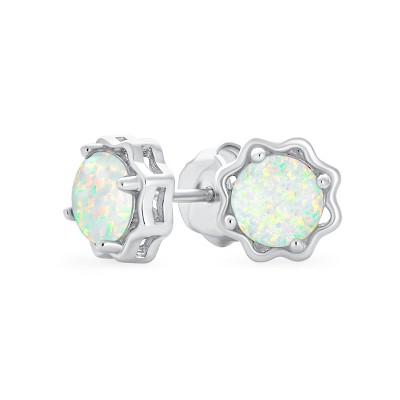 Bling Jewelry 1.5 CT Solitaire Create White Opal Stud Earrings Flower Basket Setting Sterling Silver