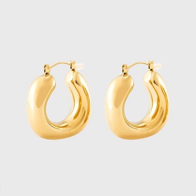 Chunky Water Resistant Square Metallic Hoop Earrings - A New Day™ Gold