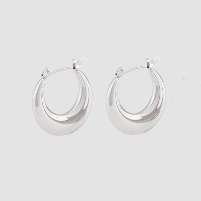 Soft Flat Water Resistant Metallic Hoop Earrings - A New Day™ Silver
