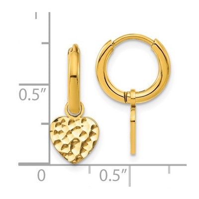 Chisel Stainless Steel Polished Hammered Yellow IP-plated Heart Dangle Hoop Earrings