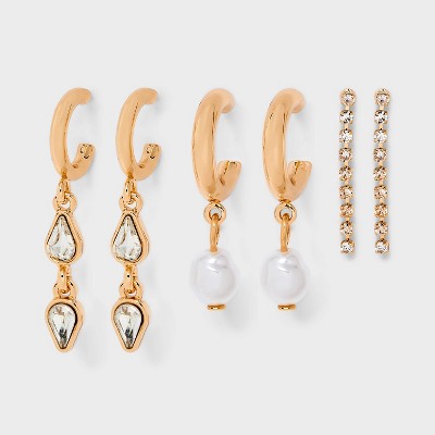 Rhinestone Earring Set 3 pc - Wild Fable™ Gold