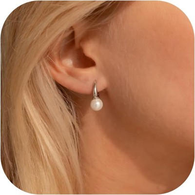 SmallRig Small Pearl Bow Earrings for Women, 925 Sterling Silver & 14K Gold Plated Dainty Dangle