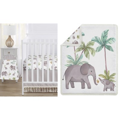 Sweet Jojo Designs Gender Neutral Unisex Baby Crib Bedding Set - Watercolor Elephants Grey Green and Blue 4pc
