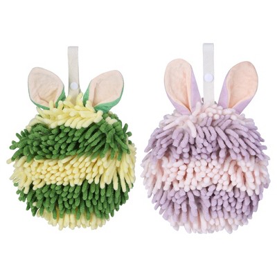 REGALWOVEN Cute Rabbit Shape Fluffy Chenille Soft Absorbent Hand Towel 2 Pcs