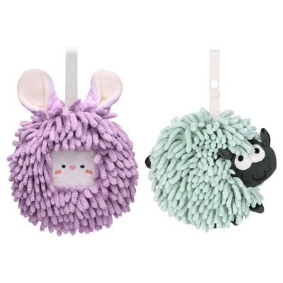 REGALWOVEN Cute Decorative Funny Sheep Shape Fast Drying Hanging Hand Towels 7" x 7" 2 Pcs