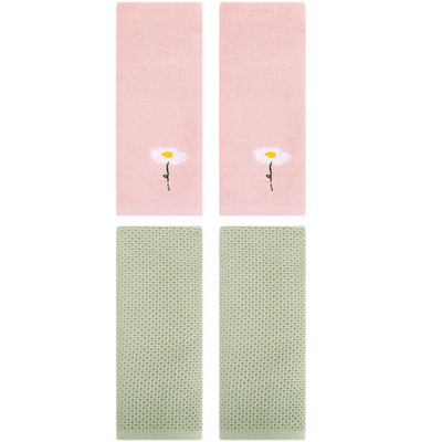 REGALWOVEN 4 Pcs Cotton Soft Absorbent Floral Pattern Hand Towel 13" x 30"