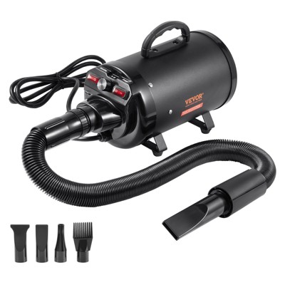 VEVOR Dog Dryer 2000W/2.7HP, Adjustable Speed & Temp Pet Grooming Hair Dryer with 4 Nozzles & Extendable Hose, Black