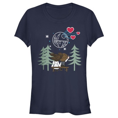 Juniors Womens Star Wars Valentine's Day Han and Leia Holding Hands T-Shirt