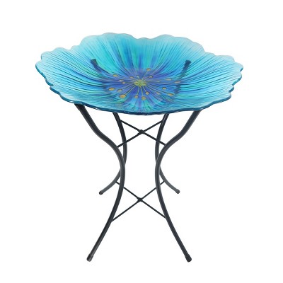 Teamson Home 17.8" Fusion Glass Birdbath with Metal Stand, Multi