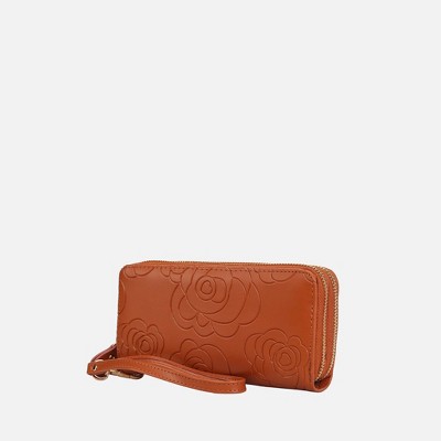 MKF Collection Honey Genuine Leather Quilted Flower-Embossed Women’s Wristlet Wallet by Mia K