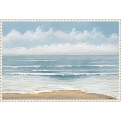 33"x23" Smooth Beach Waves by Bruce Nawrocke Framed Canvas Wall Art Print White - Amanti Art