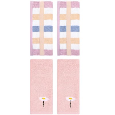 REGALWOVEN 4 Pcs Striped Design Soft Absorbent Cotton Hand Towels 13 x 29 Inch