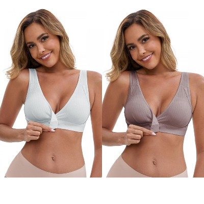 INSPIRE CHIC Women's Front Closure Wireless Postpartum Cotton Breastfeeding Lingerie V-Neck Push Up Ribbed Nursing Bras 2 Packs