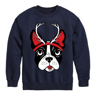 Boys' - Instant Message - Christmas Puppy With Reindeer Antlers Graphic Long Sleeve Fleece Sweatshirt