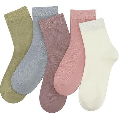 SERISIMPLE Women Thin Viscose Bamboo Socks Crew Lightweight Above Ankle Casual Dress Sock 5 Pairs