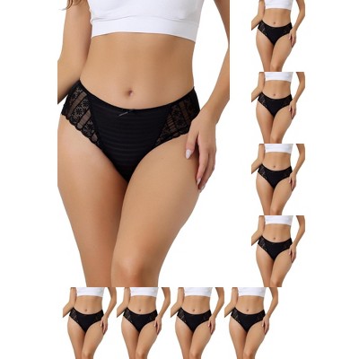 Allegra K Women's Lace Mid-Waist Full Coverage Stretchy Thin Breathable Striped Briefs Multicolored