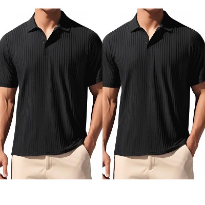 INSPIRE CHIC Men's Summer Casual Short Sleeve Texture Knit Polo Shirts 2 Packs