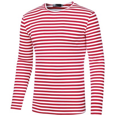 Lars Amadeus Men's Casual Striped Crew Neck Long Sleeve Pullover T-Shirt