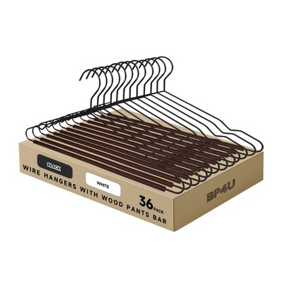 BP4U Wire Hangers with Wood Pants Bar for Dresses, Pants, Sweaters, Jackets, and Heavy Clothes