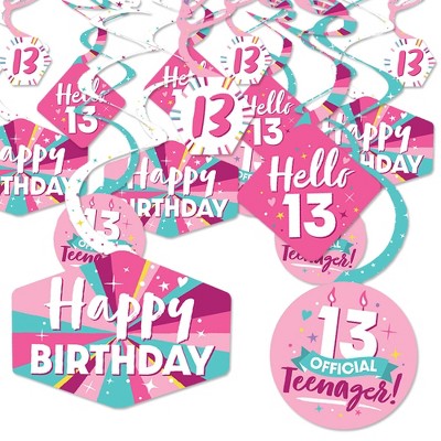 Big Dot of Happiness Girl 13th Birthday - Official Teenager Birthday Party Hanging Decor - Party Decoration Swirls - Set of 40