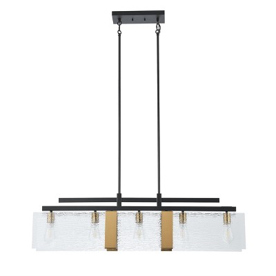 Industrial Black and Gold Linear Pendant Light 5-Light Textured Glass Hanging Light for Dining Room Decor