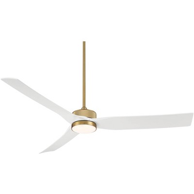 Casa Vieja 60" Montage Modern Indoor Outdoor Ceiling Fan 3 Blade LED Light Remote Control Soft Brass Finish White Blades Bedroom Patio Damp Rated