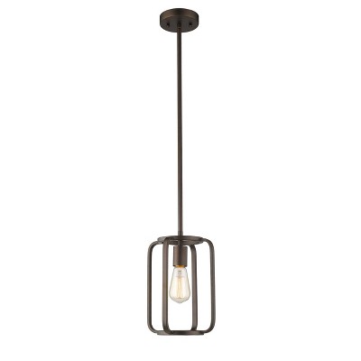 Chloe Lighting Ironclad Industrial 1 Light Rubbed Bronze Mini Ceiling Pendant 8" Wide