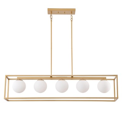 Dewdrop Farmhouse Hanging Lamp, 5-Light Modern Kitchen Island Pendant, 44.88in Adjustable Gold Frame, ETL Certified