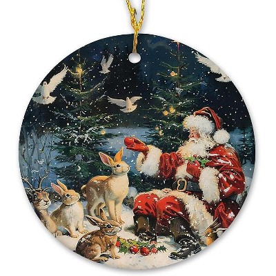 Lomsoe Vintage Christmas Santa Claus Ceramic Ornament Gifts Retro Christmas Decor Hanging Ornaments Winter Xmas Tree Decorations